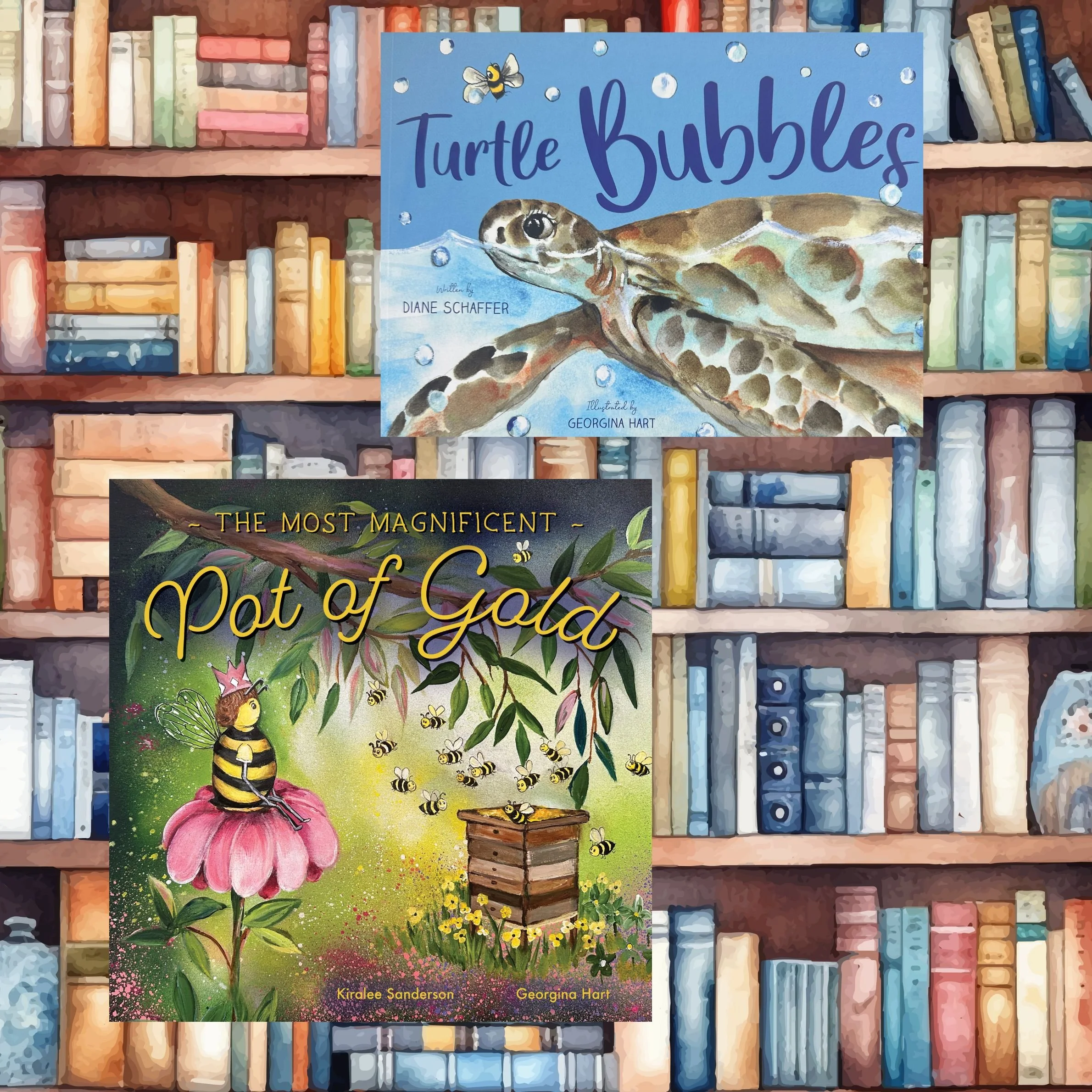 “Two of my most recent treasured projects - illustrating Turtle Bubbles and The Most Magnificent Pot of Gold - bringing these beautiful stories to life page by page”